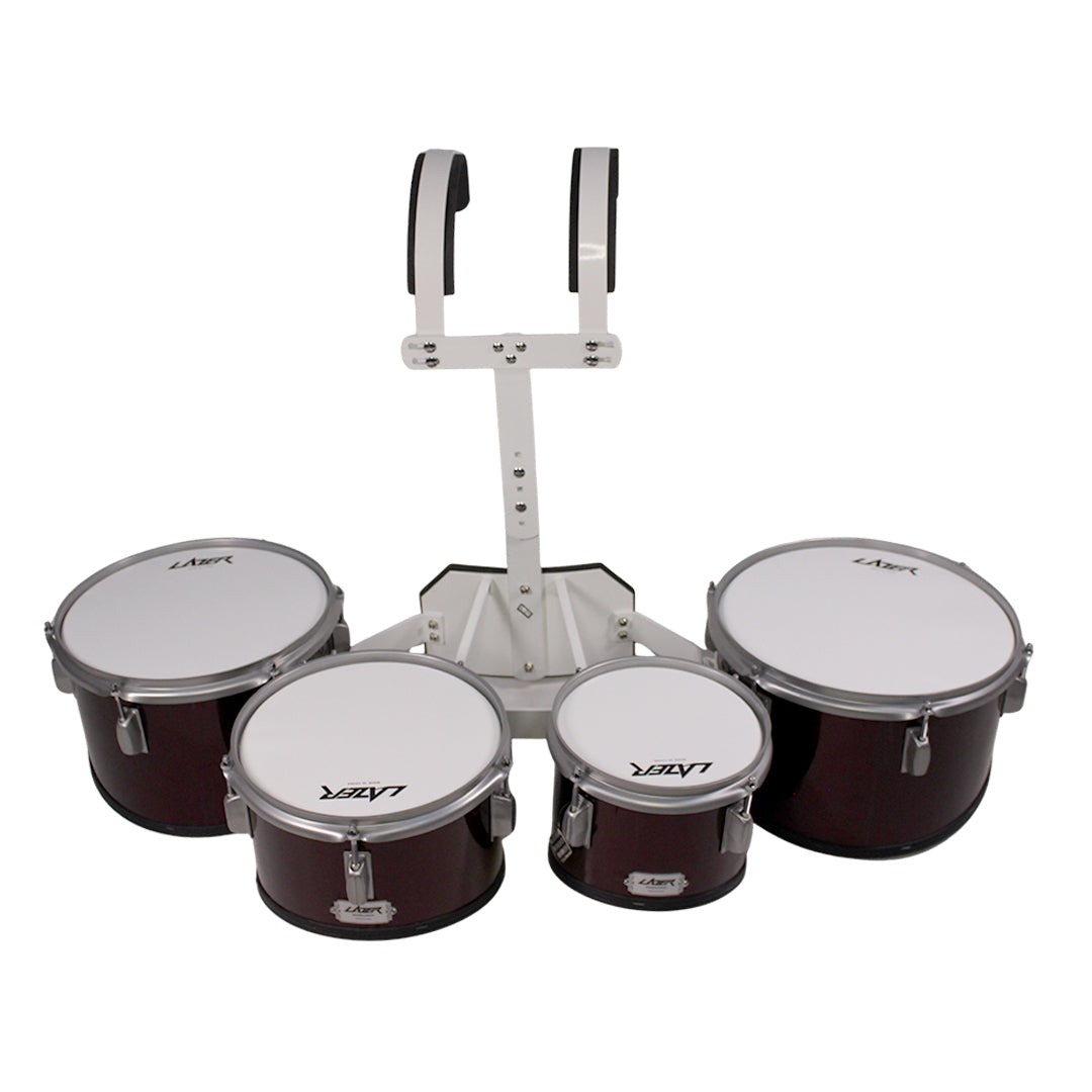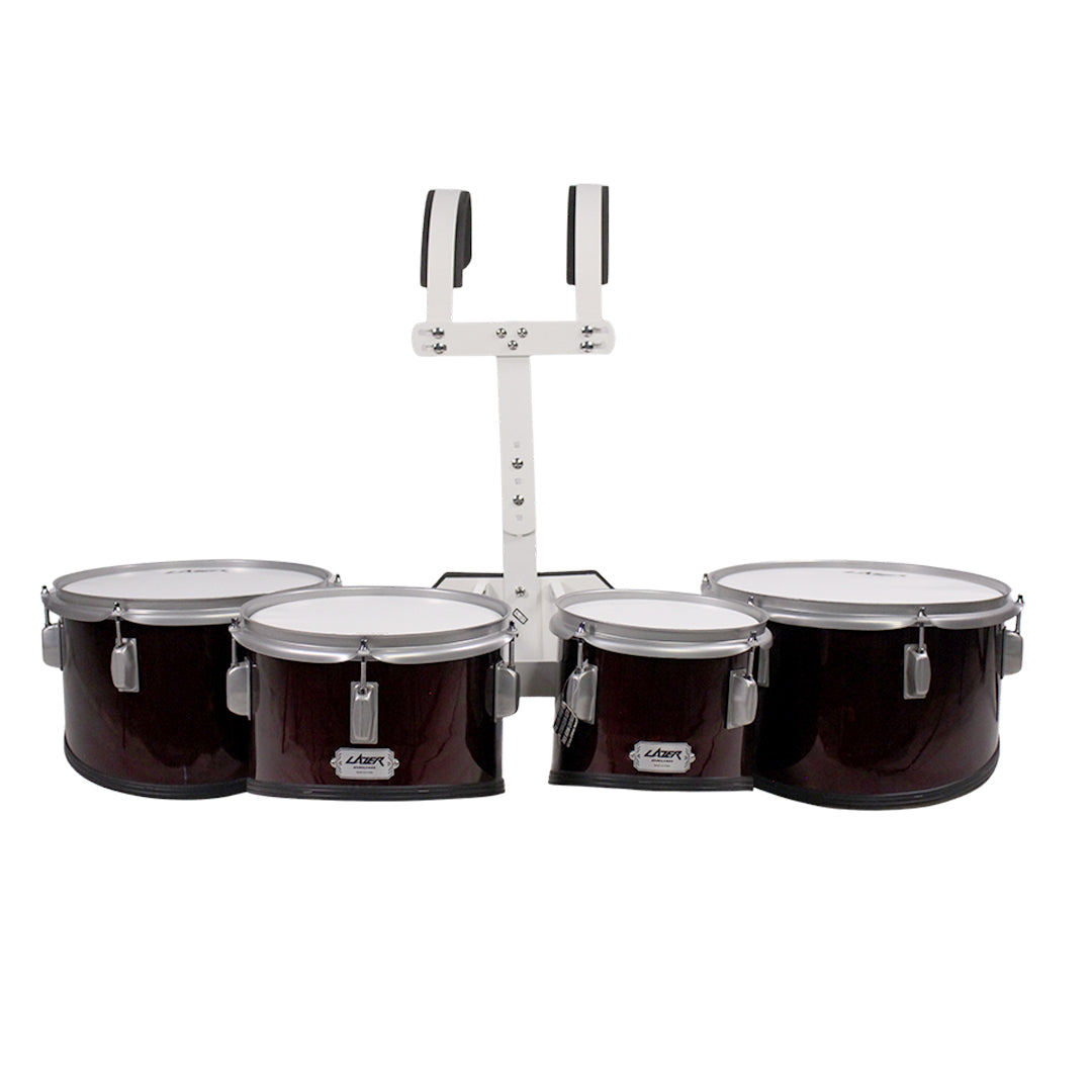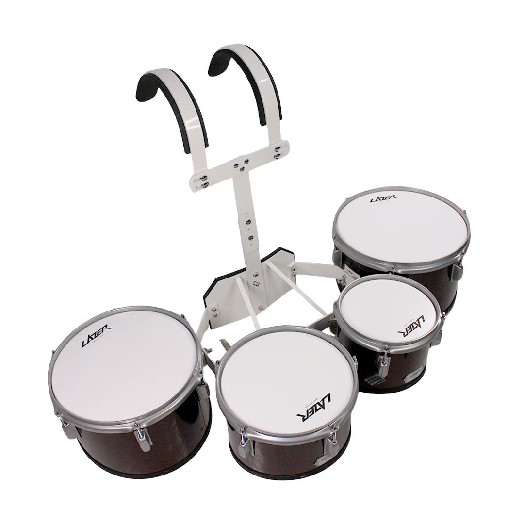 Lazer QD-2000LC-BL Marching Quad Drums | 8", 10", 12", 13" Tenor Set | 7-Ply Poplar Shells with High-Tension Steel Hoops | Includes T-Bar Harness & Sticks - Blue