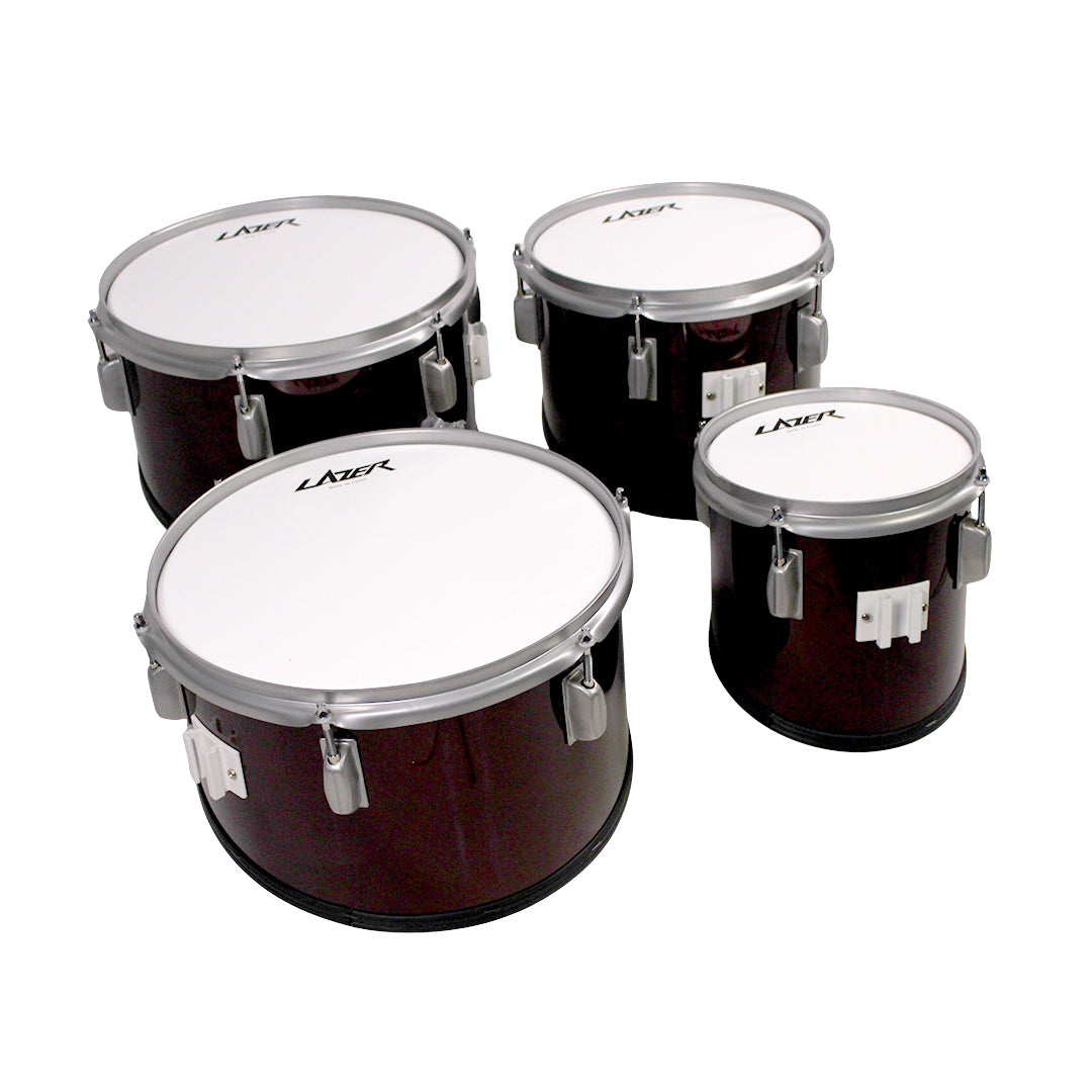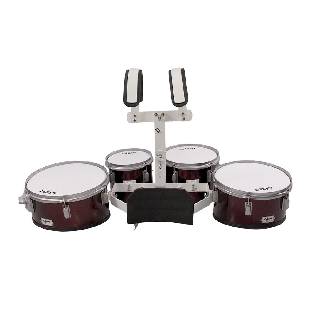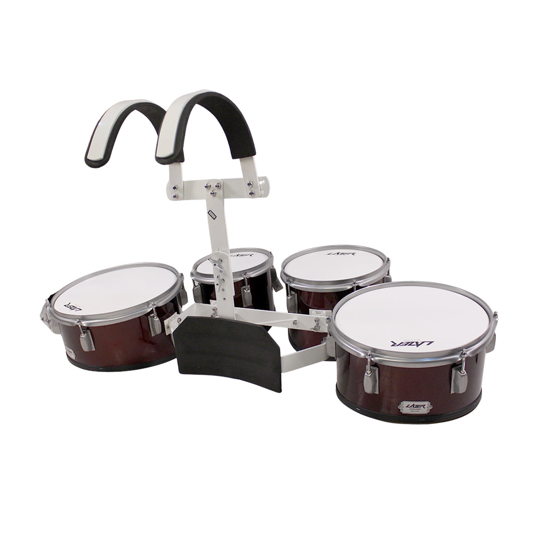Lazer QD-2000LC-BL Marching Quad Drums | 8", 10", 12", 13" Tenor Set | 7-Ply Poplar Shells with High-Tension Steel Hoops | Includes T-Bar Harness & Sticks - Blue