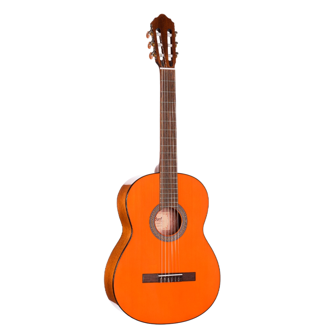 The AC Series consists of thoroughly traditional classical guitars built in the timeless Spanish style. To maximize the vibrations of the strings and the body’s resonance, lightweight woods are used through an advanced manufacturing process for that timeless Spanish sound, feel, and playability. These guitars produce deep bass and a sweet high-end with a rich midrange that only sounds better as the guitars age. For long-term stability, the AC Series guitars also feature a truss rod so the proper amount of neck relief can be dialed in no matter where you are located and what the climate is like. The yellow tint finish also exudes the classic vintage look and feel that never grows old.