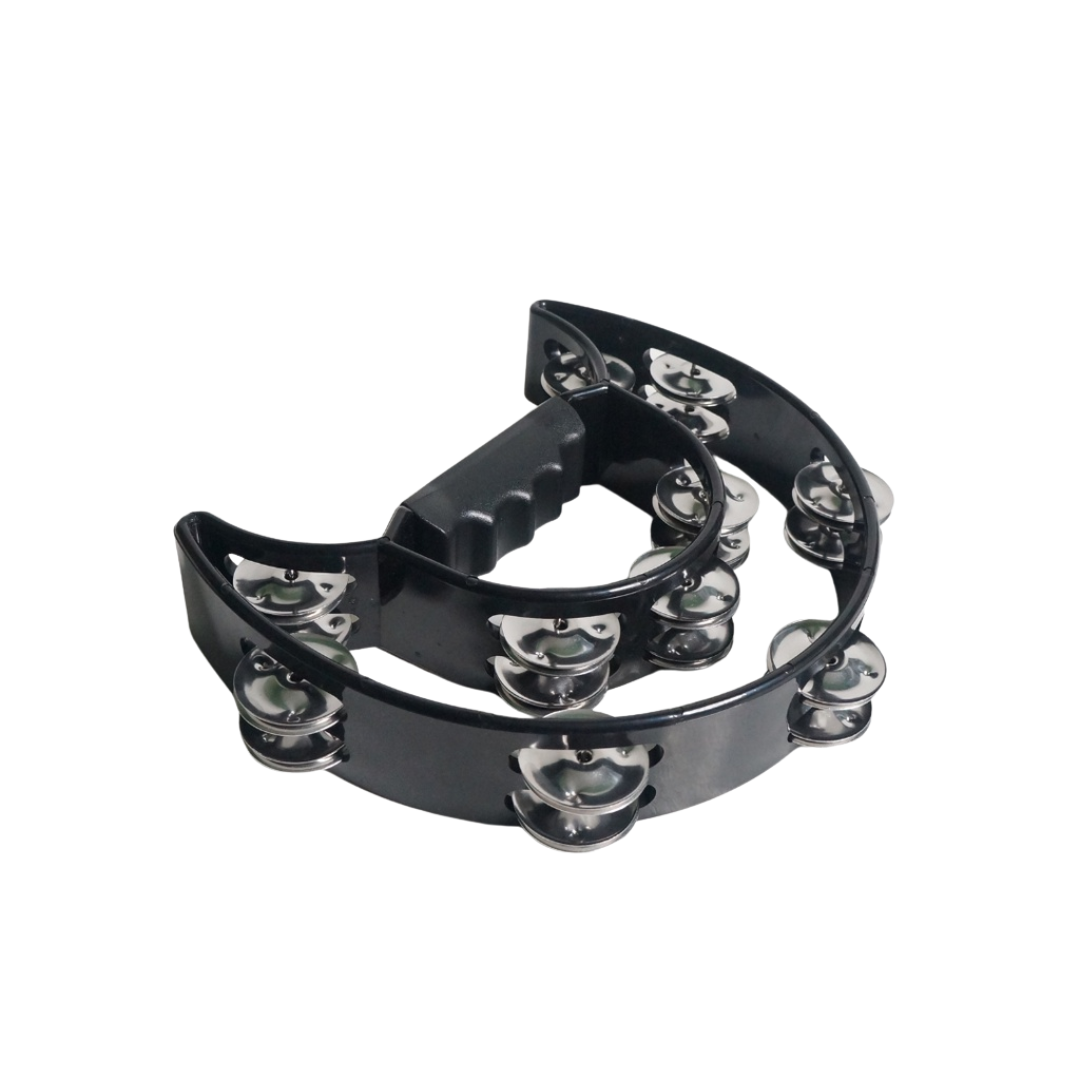 Dadi half moon tambourine, blue sturdy tambourine with a chunky plastic handle