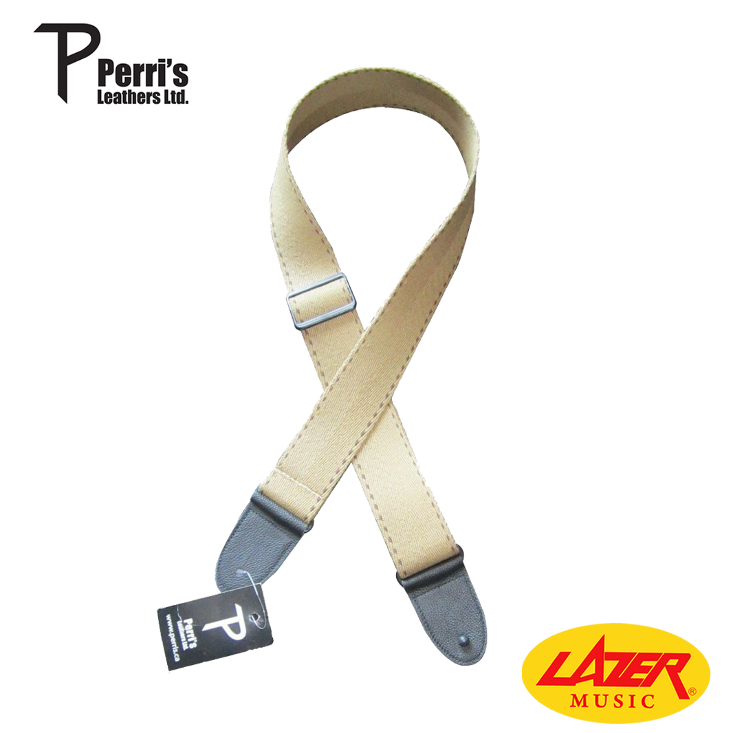 Perri's Leathers Khaki Guitar Strap (Black Running Stitch)