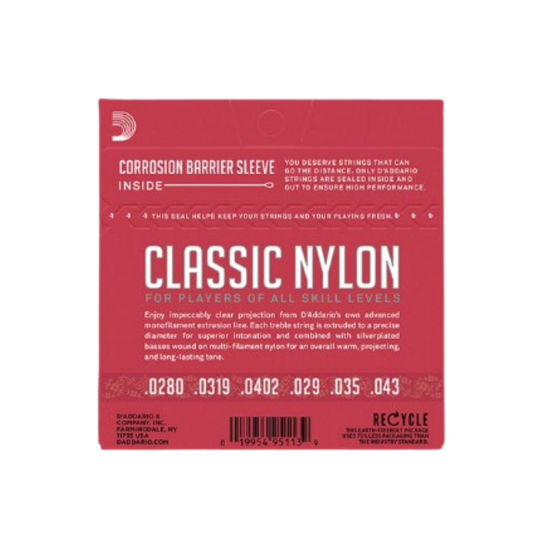 - Classic Nylon sets feature tie ends, nylon core basses wound with silver-plated copper, and clear nylon treble strings.