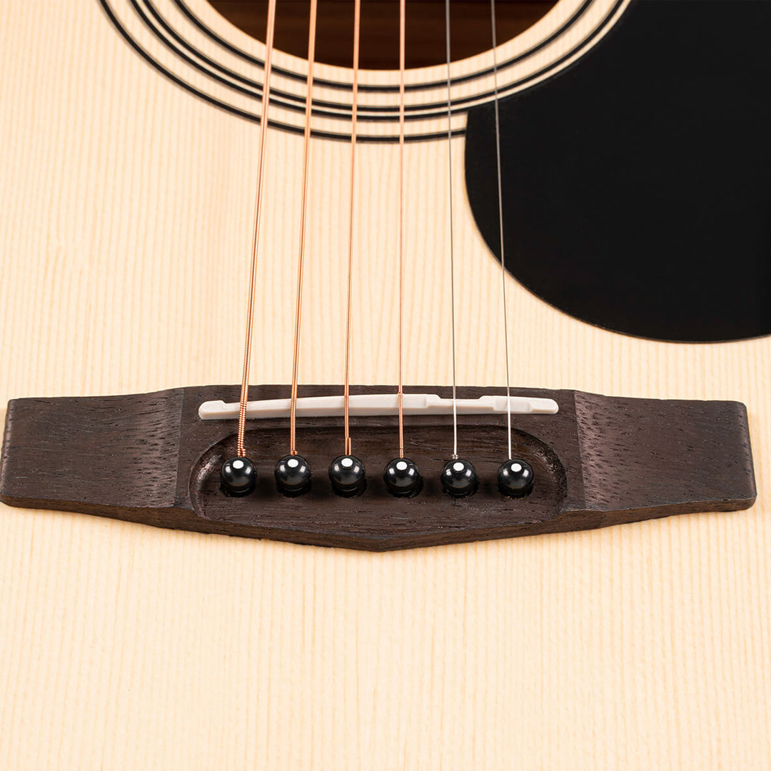 Bright yet natural with a strong and warm midrange, the beloved mahogany wood has been a standard for back and sides on premium acoustics for many decades.