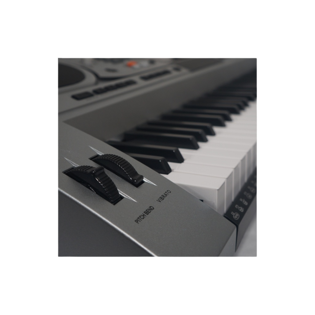 This electric keyboard has an audio input function, which can input music to the keyboard for playback. This music keyboard also allows for play of single-fingered and fingered auto-bass chords, with the capacity to select chord timbre as well as utilize effects such as vibrato and pitch changes.